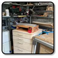 Ich hatte das grosse glück, dass sowohl mein Opa als auch mein Papa beide mehrere handwerkliche Lehren abgeschlossen hatten und für mich handwerkliche „alleskönner“ waren. Bereits als kind habe ich jedes spielzeug zunaechst auseinanderge- baut. fischertechnik war mein leben, lego-technik gab es (leider) noch nicht. diese bastel-leidenschaft hat sich bis dato gehalten. vor knapp zwei jahren habe ich mir dann meine bastelhöhle im garten gebaut. Mit knapp 3,2m x 3,2m ein sehr kleines Reich „klein aber mein“. Allerdings fördert raeumliche Limitation auch zu einer enormen Kreativitaet bezogen auf die Platzausnutzung. Eigentlich bin ich die ganze zeit damit beschaeftigt, den vorhandenen Platz gemäss meinen Ansprüchen so optimal wie möglich auszunutzen. Die meisten projekte sind werkstatt- projekte. Mein staendiger Begleiter Dino passt dabei immer auf, dass ich alles richtig mache.